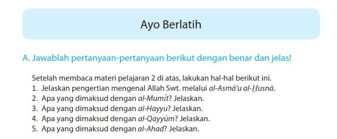 a. Tuliskan arti dari al-Mumit, al-Hayyu, Al-Qoyyum dan al-Ahad!